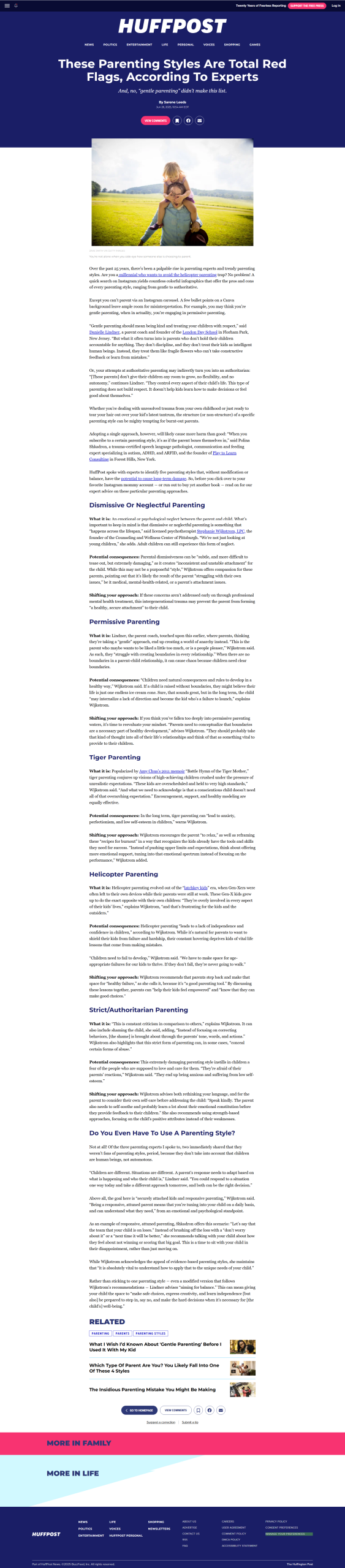 HuffPost spoke with experts to identify five parenting styles that, without modification or balance, have the potential to cause long-term damage. So, before you click over to your favorite Instagram mommy account ― or run out to buy yet another book ― read on for our expert advice on these particular parenting approaches.